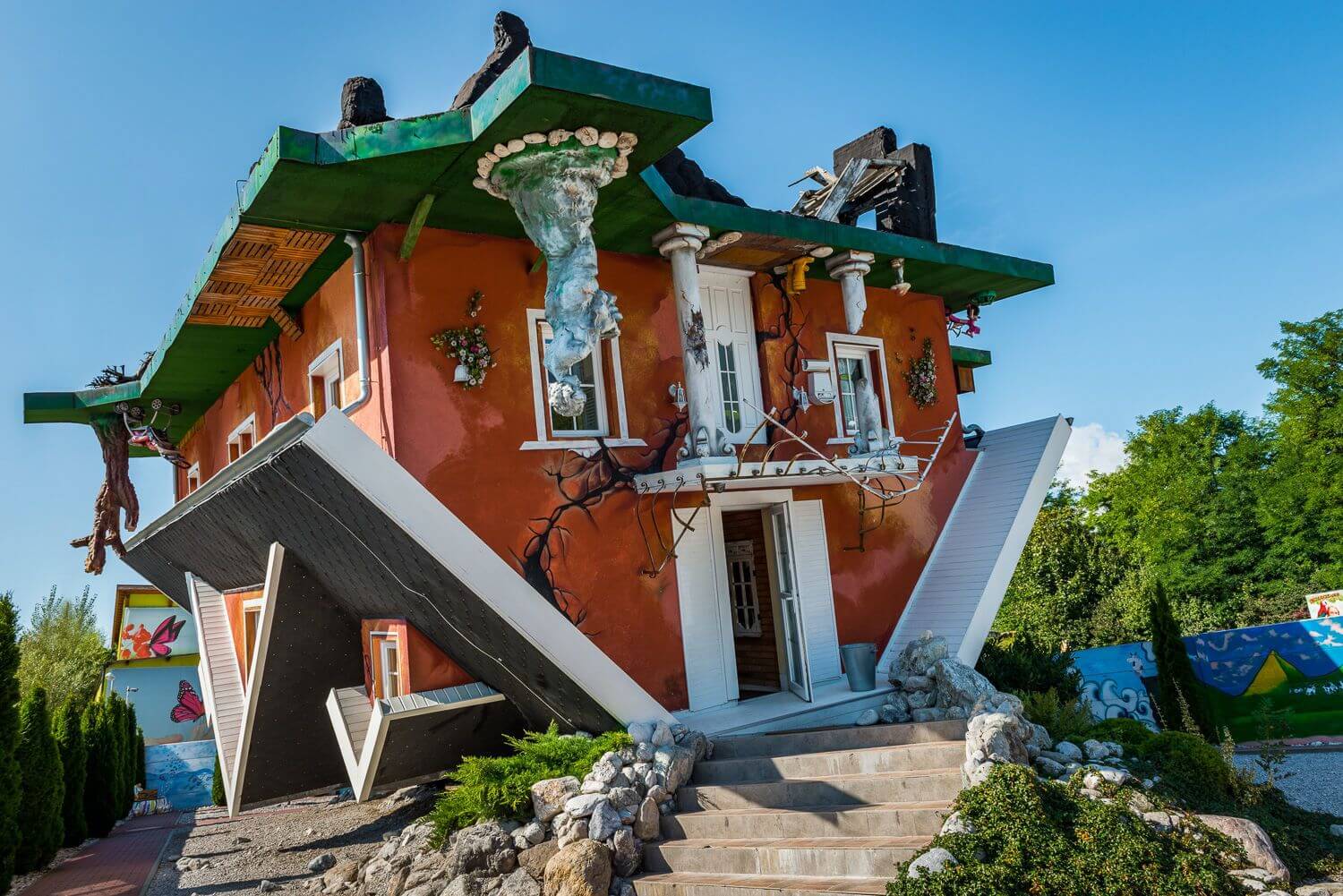 In Terfens steht das „Haus steht Kopf“ – ein ganzes Wohnhaus, das komplett auf dem Dach gebaut ist. Alles ist verdreht: Möbel, Küche, sogar das Auto in der Garage hängt von der Decke. Direkt daneben liegt das Dinoland mit lebensgroßen Dinosauriern, ein Wachsfigurenmuseum und eine bunte Bausteinwelt. Ein Spaß für Kinder und Erwachsene, die einmal die Welt aus einer ganz neuen Perspektive erleben wollen.