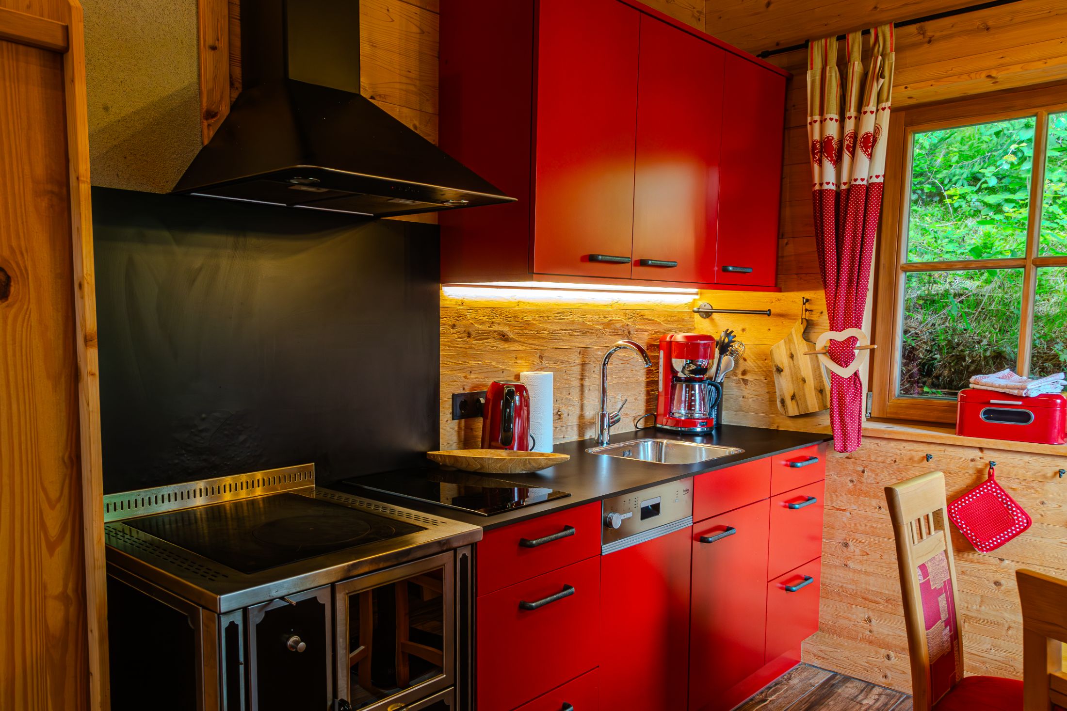 Drinnen umhüllt dich der warme Duft von Zirbenholz, ein behagliches Doppelbett und eine liebevoll eingerichtete Wohnküche mit Elektro- und Holzherd laden zum gemeinsamen Kochen ein. Die gemütliche Sitzecke lädt zu langen Gesprächen ein, das moderne Badezimmer mit Dusche sorgt für Komfort. Bodenheizung wärmt die Ferienhütte zu jeder Jahreszeit.