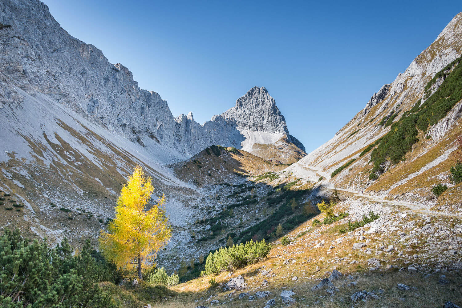 Im Engtal, mitten im Naturpark Karwendel, liegt der Große Ahornboden. Hier wachsen über 2.300 uralte Bergahornbäume auf einer riesigen Almfläche – manche sind schon über 600 Jahre alt. Im Frühling und Herbst leuchtet der Ahornboden in kräftigen Farben und bietet ein einzigartiges Panorama mit den mächtigen Karwendelgipfeln im Hintergrund. Der Ahornboden ist ideal für gemütliche Spaziergänge, Picknicks und als Ausgangspunkt für Wanderungen zur Engalm oder Binsalm.
