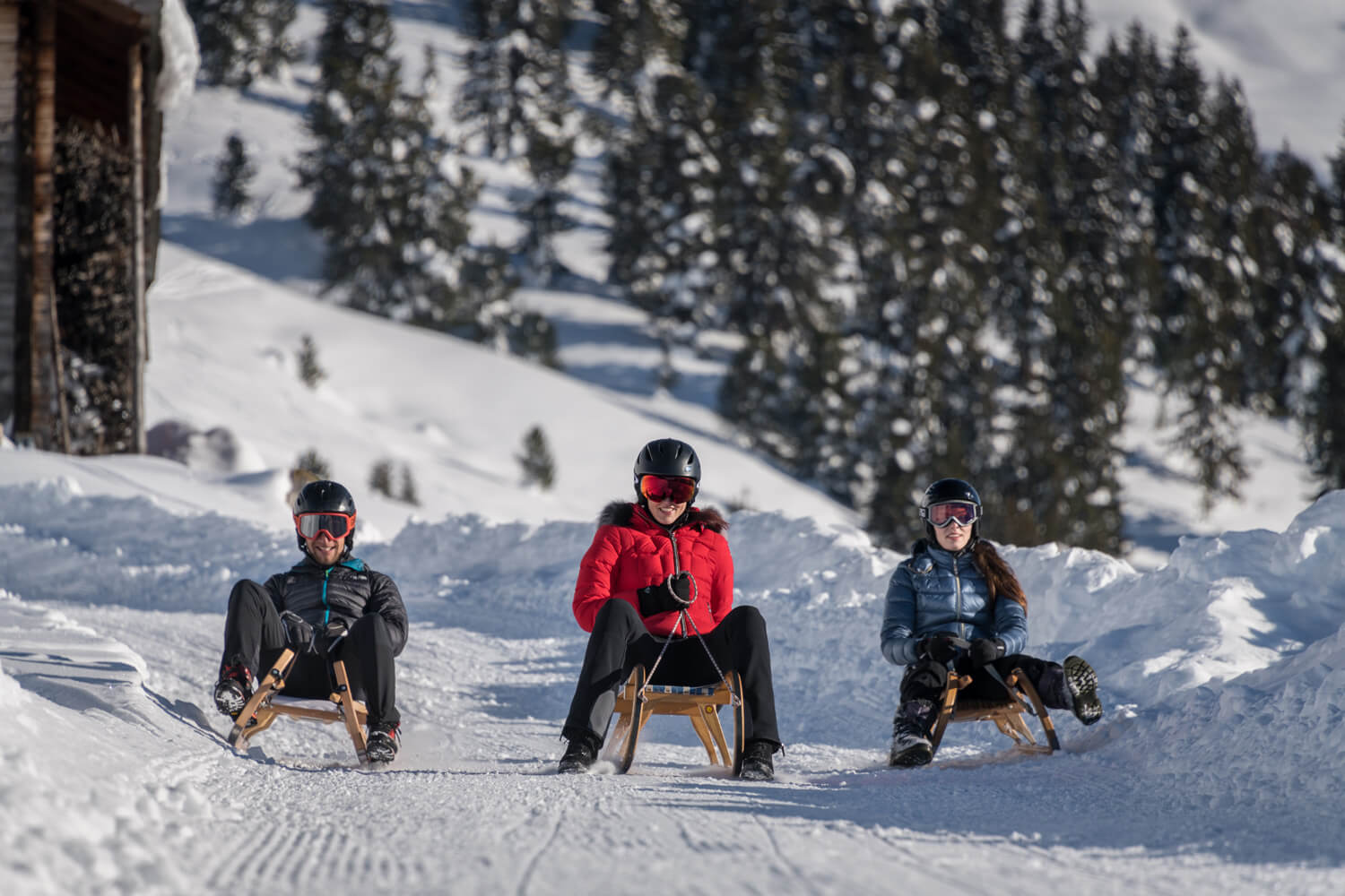 Die Rodelbahnen am Umlberg und von Maria Larch aus machen deinen Winterurlaub besonders abwechslungsreich. Du wanderst zuerst bequem ein Stück hinunter zum Start, dann wartet das Vergnügen. Hoch und runter und dann zurück zum Ferienhaus Grafenhäusl, Chalet Tiroler Hütte oder Waldhüttl.