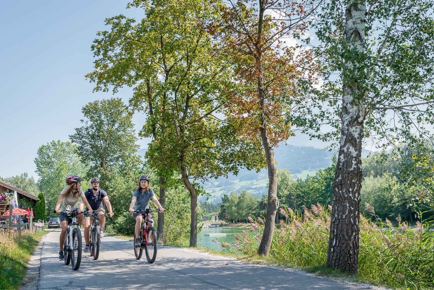 Die Tour zum Badesee Weißlahn ist ein echtes Highlight für uns Mountainbiker in der Silberregion Karwendel. Auf abwechslungsreichen Wegen radeln wir durch kleine Dörfer, über sanfte Hügel und vorbei an grünen Wiesen. Immer wieder eröffnen sich herrliche Ausblicke auf das Karwendelgebirge und die Tuxer Alpen.